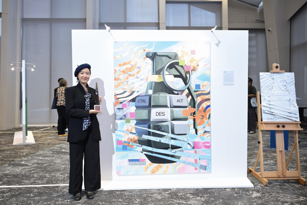 ในประเภทศิลปินใหม่หรือศิลปินสมัครเล่น ผลงาน Ctrl + Alt + Destruct โดยคุณธัญญภัทร มานะสาระกุล คว้ารางวัล Most Promising Artist of the Year ผลงานชิ้นนี้สะท้อนถึงดาบสองคมของเทคโนโลยีและปัญญาประดิษฐ์ ผ่านการนำเสนอภาพระเบิดมือที่ฝังแป้นพิมพ์ “CTRL”, “ALT” และ “DES” อย่างแยบยล สื่อถึงพลังของเครื่องมือดิจิทัลที่สามารถทั้งสร้างสรรค์และทำลายได้ในเวลาเดียวกัน
