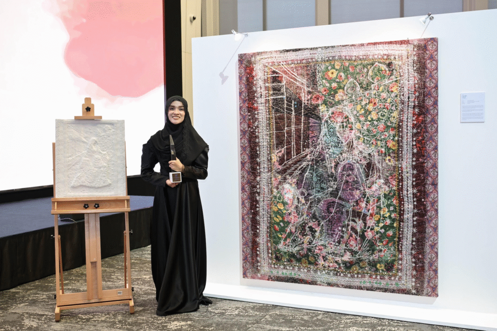 ธนาคารยูโอบี ประเทศไทย มอบรางวัลชนะเลิศการประกวดจิตรกรรมยูโอบี ประจำปี 2568 แก่คุณยามีล๊ะ หะยี จากผลงานเย็บปักถักร้อยบนผืนผ้าในชื่อ ดุอาอ์ (วิงวอนขอพร) ซึ่งถ่ายทอดภาพของสตรีผู้วิงวอนให้โลกเต็มไปด้วยความหวังและสันติภาพ ถ่ายทอดเรื่องราวผ่านเส้นด้ายที่ถักร้อยชีวิตเข้ากับความฝันอย่างประณีต บ่งบอกเรื่องราวอันทรงพลังที่ผสมผสานระหว่างจิตวิญญาณ และจินตนาการได้อย่างงดงาม