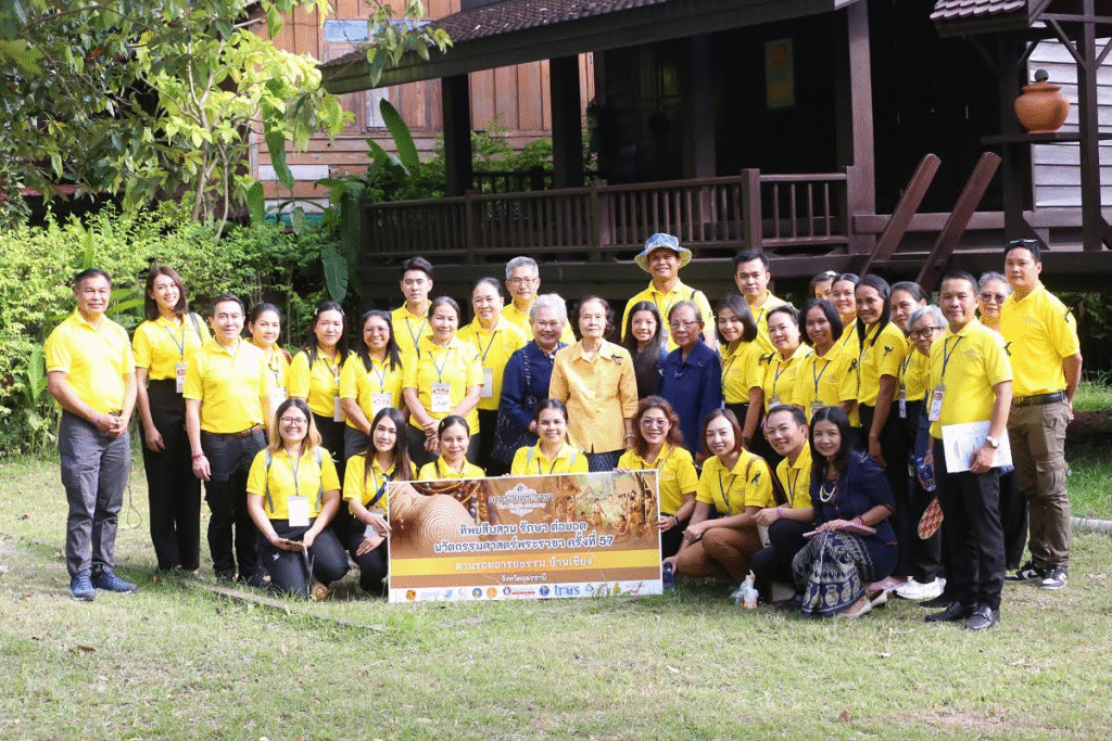คณะผู้เข้าร่วมโครงการได้เริ่มต้นการเรียนรู้ที่ “พิพิธภัณฑสถานแห่งชาติ บ้านเชียง” เพื่อศึกษาประวัติความเป็นมาของชุมชนโบราณแห่งนี้ ซึ่งมีอายุย้อนไปกว่า 5,000 ปี ภายในจัดแสดงโบราณวัตถุจำนวนมาก ทั้งเครื่องปั้นดินเผาลวดลายงดงาม เครื่องมือหิน เครื่องประดับสำริด และหลักฐานการฝังศพที่สะท้อนถึงความรุ่งเรืองของสังคมเกษตรกรรมยุคแรกเริ่ม ผู้เข้าร่วมยังได้เรียนรู้เรื่องราวเกี่ยวกับพระราชกรณียกิจของในหลวงรัชกาลที่ 9 ที่ทรงเห็นว่าการอนุรักษ์รากเหง้าทางวัฒนธรรมคือการปลูกฝังจิตสำนึกแห่งความพอเพียงและความภาคภูมิใจในความเป็นไทย อันเป็นหัวใจสำคัญของการพัฒนาอย่างยั่งยืนในระยะยาว